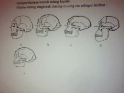 Outline tulang tengkorak masing-masing ras berbeda dan hal ini memperlihatkan bentuk tulang kepala. Outline tulang tengkorak masing-masing ras adalah seperti pada gambar berikut :